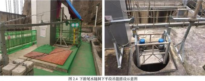 拟利用下游尾水隧洞通气孔搭设电动吊篮作为下平段施工通道。下游尾水隧洞通气孔直径为1.5m,地面距离流道底板高度为42m,根据通气孔直径,定制电动吊篮工作平台规格:宽度90cm、长度1.2m,吊篮长度和宽度必须满足现场需求。