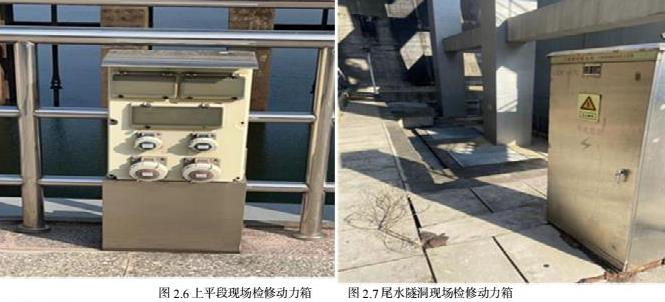 上游引水隧洞上平段施工电源从工作闸门附近的检修动力箱接引,下游尾水隧洞施工电源从尾水工作闸门附近的检修动力箱接引。施工用电线路沿闸门槽铺设至流道底板,然后沿流道壁铺设至工作面。在流道侧墙合适的高度,每隔15~20m 设置插筋,用于固定和架设施工电缆,插筋采用φ12 螺纹钢筋,插筋锚固长度10cm,外露20cm,插筋外露部分外套塑料绝缘管,以免电缆与插筋直接接触。隧洞沿线每隔100m 左右安装一段24v 探照灯,并且所有施工人员均配戴头灯,保证隧洞内行走照明需求。