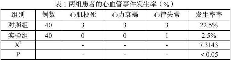 心血管事件发生率对照组多于实验组,组间对比有统计学意义,P<0.05。