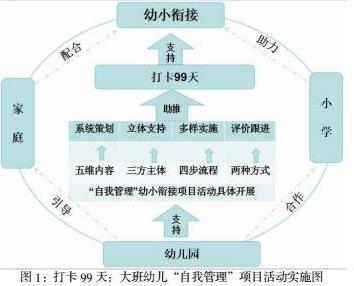 依托项目活动的形式,通过重组幼小衔接的各类活动,整合幼儿园、家庭、小学资源,延伸项目活动时间,架构紧扣幼儿的需求,能推进幼儿深度探究,促进幼儿顺利过渡幼小衔接的过程。在项目实施和推进完善项目目标、项目内容,形成系统策划—立体支撑—分类实施—评价跟进的闭环式实施路径,形成一套“自我管理”幼小衔接项目活动新内容。