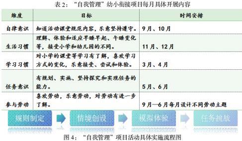 幼儿园中需要衔接什么?幼儿园中的“自我管理”方面和小学的“自我管理”异同在哪里?在衔接过程中不仅是幼儿的成长需要衔接,教师对于“自我管理”的内容也是需要衔接。小学组织层需要不断提供幼小衔接的支持与反馈,并定期进行指导。