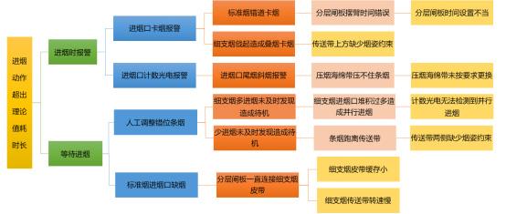 标准烟错道卡烟 分层闸板摆臂时间错误 分层闸板时间设置不当进烟口卡烟报警田支烟钱起造成叠烟卡烟 传送带上方缺少烟姿约束进烟时报警进烟进烟口计数光电报警 进烟口尾烟斜烟报警 压烟海绵带压不住条烟 压烟海绵带未按要求更换细支烟多进烟未及时发现 细支烟进烟口堆积过多造 计数光电无法检测到井行造成特机 成井行进烟 进烟人工调整错位条烟少进烟未及时发现造成待 条烟跑离传送带 传送带两缺少烟姿约束等待进烟细支烟皮带缓存小标准烟进烟口缺烟 分层闸板一直连接细支烟皮带细支烟传送带转速慢