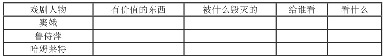 以人教版必修下册第二单元为例,包含了《窦娥冤(节选)》《雷雨》《哈姆莱特》这三篇课文。针对本单元内容,语文教师可以将主题设置为“悲剧的生命价值”,并以此设计三个学习任务,目的是让学生通过学习课文后,除了能够总结概括各个悲剧人物的基本特点及其内涵,也能够在感受形象、品味语言和体验情感过程中提升文学鉴赏能力,具体如下:(1)任务一,走进悲剧世界:向学生提供层层递进的问题链,如“思考你更喜欢喜剧作品还是悲剧作品?”“结合自身阅读体验,说一说什么是悲剧?”“结合这三篇课文内容,概括各个悲剧人物特点。”;(2)任务二,感受经典悲剧:引导学生思考这三个悲剧人物,以小组形式展开探究和讨论,并完成相关表格内容填写,如表1 所示;(3)任务三,体会悲剧的经典:先由教师展示一个个剧评家对悲剧的看法,通过让学生阅读相关内容,尝试从“悲剧的价值”角度概括相关观点。