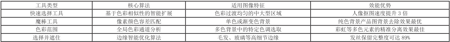 表 1 Photoshop 自动选取工具功能特性矩阵