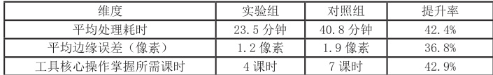 1. 工具认知:实验组采用“算法原理—案例演示—错误对比”三维教学法,例如,通过动态演示魔棒工具的像素颜色匹配过程,帮助学生理解容差参数的影响机制;对照组采用传统“工具介绍- 操作演示”教学法。