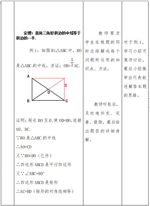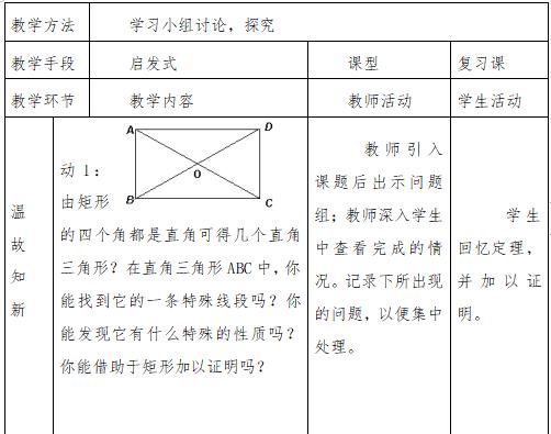 1. 教学重点: 直角三角形斜边上的中线性质定理的证明与应用。
