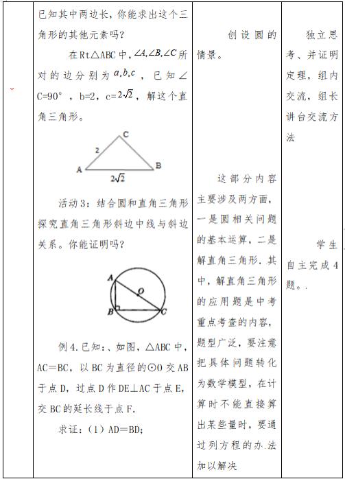 本节课是一节中考复习课 , 课堂中数学优秀生较少、中等生及后进生比例较多,复习的内容是:直角三角形斜边上的中线等于斜边的一半。