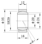 为解决每次配套时出现轴承不合格及效率低下问题,通过分析影响轴承转动灵活性的因素,发现轴承游隙是影响轴承灵活转动的关键指标。对于关节轴承而言,轴承游隙 = 轴承内圈外径 - 轴承外圈内径。轴承游隙就是单个轴承内部、或者几个轴承组成的系统内部的间隙(或干涉)。本文中采用的UG20 轴承属于向心关节轴承,具体尺寸见下图8 所示。