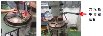 由于每件轴承的游隙不同,且在收口过程中压紧力的大小对轴承的灵活性有较大影响,为消除因压紧力过小造成外圈轴承滑动,因压紧力过大而导致内圈轴承卡滞,在机床上增加力矩扳手,得到不同游隙值下对应的压紧力范围。将力矩扳手安装在机床上,下图10 所示为安装力矩扳手前后对比图。