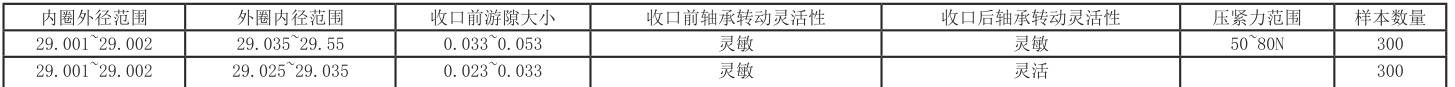 机床增加力矩扳手后,得到了不同游隙值对应的压紧力范围。如表2 所示。在游隙范围一定时,压紧力范围在50\~80N 之间,对于操作者具有指导作用。减小了因收口而造成的不合格品率。