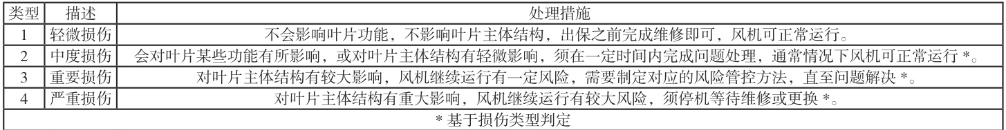 为确保损伤评定的真实性和可靠性,提高各类问题解决的实效性,保障风电机组能够正常运转。在叶片缺陷等级划分标准确定的过程中还应当坚持具体问题具体分析的原则,根据同类问题在不同位置所带来的影响和冲击对动态损伤等级划分标准作出进一步调节。例如风电机组叶根部位的受力较大,若出现裂纹、褶皱、发白等问题则很容易会扩大影响,这时则应适当的提高其评估的严重程度,进而提升损伤等级的划分准确率。