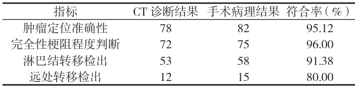 肿瘤定位准确性、完全性梗阻程度判断、淋巴结转移检出、远处转移检出、CT 特征与病理类型的相关性。