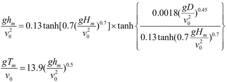 波浪计算高度采用莆田实验站的公式计算:0.0018( gD)0.4
