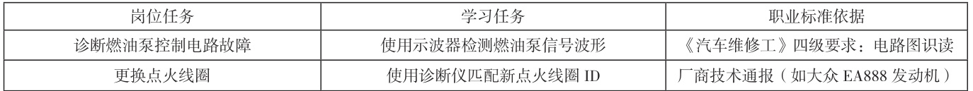 构建“岗位任务—学习任务”对照表,明确每个学习任务对应的职业标准要求。