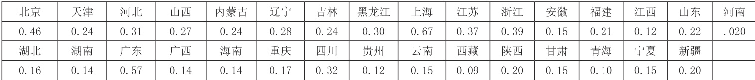 根据 2012—2021 年中国各省份数字经济测度结果表 2 可知,第一,中国各省份数字经济具有明显的空间分布特征,由东向西扩散,越靠近西边数字经济水平越低。第二,从现代化综合得分来看,上海最高,广东次之,排在最后的是西藏,具有显著的城市间差异。