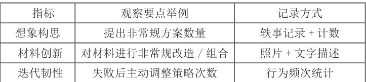 观察评价能力提升:能识别幼儿创造行为(如“用新方法组合旧材料”)。