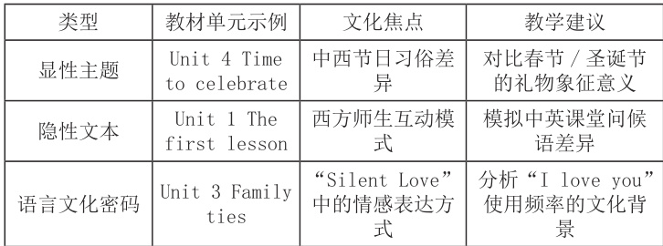 表:教材文化元素分类及教学建议示例