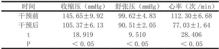 干预后患者收缩压、舒张压、心率水平低于干预前,差异明显( P<0.05) )。具体数据见下表。