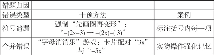 总结语:以中档能力学生为研究对象,把数学思想大单元重构融入《整式的加减》,并提出了“情境搭桥—分层递进—可视化强化”的教学方法;通过大量的教学实践证明有助于学生的符号意识和运算系统化能力的提高,且出错率下降明显。建议从“运算主线”穿针引线串联整个单元教学,用生活化类比方法使教学通俗易懂,用思维导图、树状图等构建认知体系,实现代数思维长效培养目标。