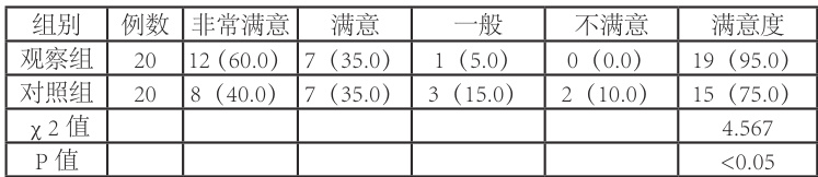 观察组患者对护理服务的满意度为 95.0% ,高于对照组的 75.0% ( ⋅P<0.05⋅ ),见表3。