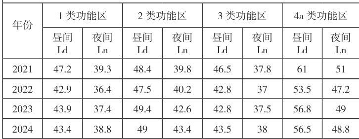 依据塔城市环境监测站 2021-2024 年监测数据情况,各类功能区昼间、夜间噪声达标率均为 100% 。(见表1)