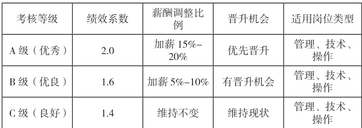 下表展示了建筑施工企业绩效考核与薪酬挂钩的典型模