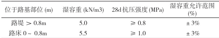 表1 泡沫轻质土施工配合比湿密度和抗压强度技术指标