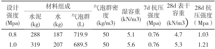 表2 泡沫轻质土配合比和试验技术指标