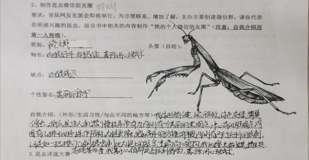《昆虫记》的启示是多方面的,它鼓励学生从不同角度思考问题,激发他们的想象力,提高他们的观察力,并通过艺术表现形式将科学知识生动形象地呈现。在实施跨学科教学时,教师可以设计一系列的课堂活动,例如让学生在阅读《昆虫记》后,创作一幅以昆虫为主题的简笔画,或者以昆虫的视角撰写一个小故事,这些任务旨在让学生通过艺术创作,理解并表达科学概念,从而培养他们的创新思维和跨学科综合能力。(学生作品展示)