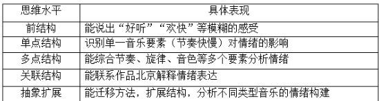 SOLO 分类理论将学生的思维水平分为前结构、单点结构、多点结构、关联结构、抽象扩展结构五个层次,适用于构建多层次评价标准。[4]以 “音乐情绪分析” 为例,这种分层标准既能让教师精准定位学生水平,也能为学生提供进阶路径。(如图1)