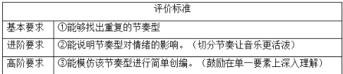 表现性评价目标需与课标要求精准对接,明确 “评什么”。例如,针对 “创意实践” 素养,可设定 “能运用生活中的声音素材创编节奏片段” 的目标;针对 “文化理解”部分,我们可设定 “能识别不同民族音乐的文化符号” 的目标。这些目标需具体、可操作,避免空泛表述。