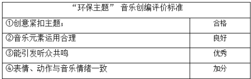 针对特长生或拓展性任务,标准侧重 “能否迁移知识、创造新意义”,如 “能将民族音乐元素融入现代创作”“能通过音乐表达个人观点或社会议题”。例如,在 “环保主题” 音乐创编中,学生用塑料瓶敲击节奏模拟雨声,结合环保歌词创作歌曲,这类标准激发学生的批判性思维与创新能力。(如图5)