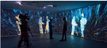 服装艺术设计从抽象概念转变成具象实物的重要环节当中,数字化技术正在逐渐加深其在结构剖析与工艺革新方面的实际用途,依靠虚拟仿真平台,设计师可以冲破传统制版和样衣制作的技术限制,灵活探究并牢牢把握空间形态的设计思路,凭借专业的软件工具,可以迅速塑造出服装的三维数字模型,对分割线的安排,省道的转移,褶皱的分布以及整体的比例关系执行精确的计算,而且可以动态调整,从而改良设计方案,大幅度削减实物试制过程中反复修改的次数和耗费的资源,在应对比较繁杂的结构设计的时候,对于那些不能用平面裁剪达成的立体造型或者特别的空间联系,三维创建平台给予的直观可视化的功能,有益于更加准确地显示成型效果和穿着感受,进而有效地预估成品的实际性能 [2]。数字技术可以精准模拟各种织物的物理特性,在特定结构条件下预估其悬垂性能、弹性行为以及形态稳定性,给工艺方案选择赋予科学依照,针对需做特殊加工处理的部分区域或者装饰细节,一些高级软件可以直接制造出对应的零部件或者模具模型,这种数字化办法极大地缩减了结构规划以及工艺检验所需时间,而且有效地削减了实际试验所花费的成本,使得设计者可以把更多精力投入到核心结构的设计和美学改良之中,进而深入探究设计理念的内涵。图 1 即为莫斯科艺术家 IgorTatarnikov 作品《共生》(Symbiosis)——实时投影将观众肢体转化为光影羽翼,技术延伸身体表达的隐喻维度。