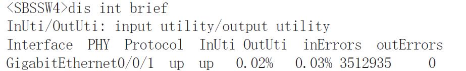 输入命令 display interface brief 查询 SW4 设备端口信息,发现端口 27 入方向有大量错误的数据包,隔一段时间再次输入命令查看,发现端口27 入方向错误的数据包数量仍然在增加。