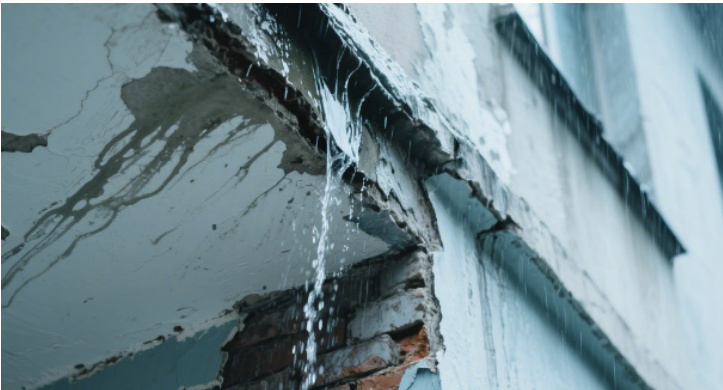 外墙渗漏问题在施工环节主要体现为防水施工质量有缺陷以及其他相关施工存在问题,在防水施工质量方面。首先,防水材料的施工工艺不够规范,像防水涂料涂刷厚度不均匀、卷材铺贴不平整或者搭接长度不足,都会破坏防水层的整体性,使其没办法有效阻隔雨水渗透,其次施工顺序安排不合理,如门窗安装和防水层施工顺序颠倒,会造成关键节点防水处理不严密,从而形成渗漏隐患。此外,施工人员专业素质不够充足,比如缺乏对防水材料特性和施工技术的系统培训,在热熔焊接、密封处理等关键环节操作不当,进一步加大了渗漏风险。在其他施工环节当中,砌体施工质量存在缺陷是重要诱因,砂浆不饱满、灰缝有空洞或者使用劣质砌块会使墙体孔隙率增加,导致雨水容易渗入内部,同时门窗安装质量直接影响外墙防水性能,要是框体与墙体间缝隙填充不密实、密封胶条安装不到位,在风压作用下雨水容易渗入室内。此外,装饰施工若没有对既有防水层采取保护措施,可能会因机械损伤或高压冲刷破坏防水层,间接引发渗漏。如下图1。