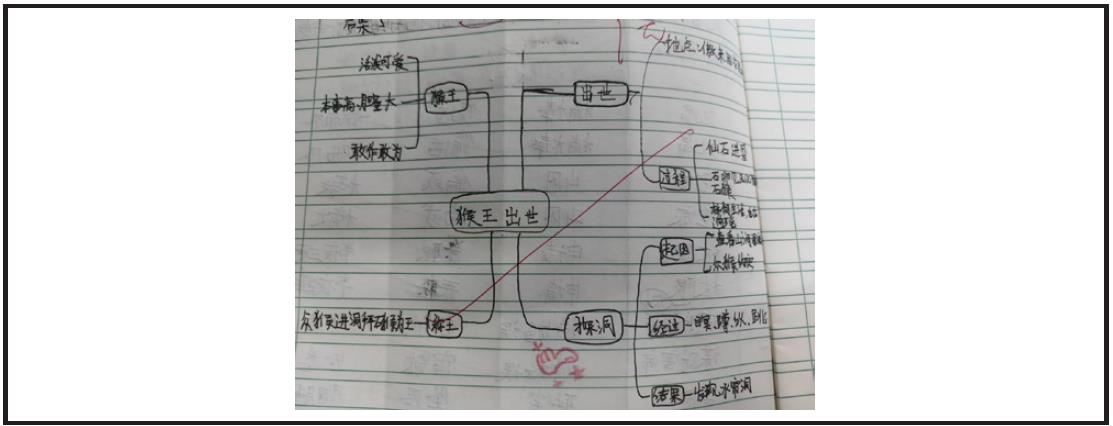 生:他不止将文章内容呈现在图中,还将对猴王形象特点的概括呈现在了思维导图中。