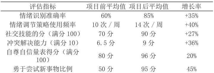 项目实施一年后,我们通过标准化心理评估工具对幼儿进行了前后对比测试,具体成果如下: