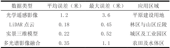 测绘数据质量是实现精准管理的基础,其中数据的获取时效和空间精度直接决定信息是否具备实时性与操作价值,在浙江金华市自然资源一张图建设项目中,针对不同地类采用不同采集方案,遥感影像更新周期设定为 15 天,LiDAR 数据更新周期为季度,图斑误差控制目标设定为 20 厘米以内。系统在 2023 年三季度内处理图斑 4175 个,经核查误差大于 30 厘米的图斑有 287 个,占比不高但集中于山地与城市边界区,表 2 为不同数据类型在典型区域的误差统计表。