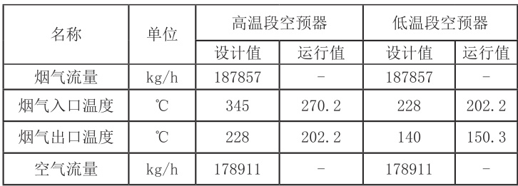 表1水热媒空预器系统运行数据