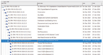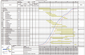 新加坡业主对于主要的施工分项,如围护结构、灌注桩、地基加固等,要求按天更新完成情况,类似国内的形象进度图。将这种管理与目标计划相结合,即可将计划中乐观 / 悲观计划向下赋予分项工程,并且可与实际完成情况进行比对,反映分项工程实际完成是否符合计划要求,对后续施工是否存在不利影响。如图 10/11所示。