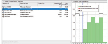 与主办工程师及分包单位协商,确定主要分项工程的资源投入情况,利用 P6 软件资源加载功能,将主要设备、材料等资源加载至相关作业中,利用资源使用柱状图,对照现有可利用资源情况,可知现有资源是否可以满足目前计划安排,如图6 所示。