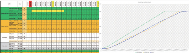 需要通过工程管理部现场工程师采集每日完成情况,按日留存详细完成数据,绘制完成情况累计曲线并与进度计划(乐观 / 悲观)进行比较,及时反馈完成情况给工程管理部相关人员,如有超出进度预期或低于必要进度情况发生,应向工程管理部提出预警。