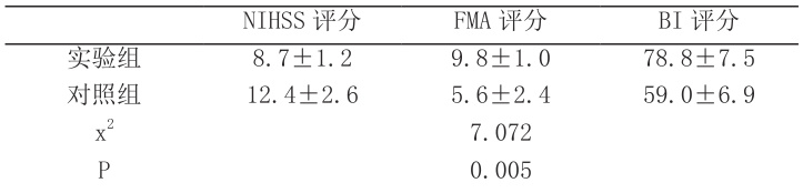 由下表 1 所示,实验组患者通过使用藏药浴治疗,其 NIHSS 评分明显低于对照组,FMA 评分、BI 评分也更高,说明实验组患者神经功能恢复更佳,且平衡功能、日常生活能力更高,治疗效果更显著,数据差异具有统计学意义(P<0.05) )。