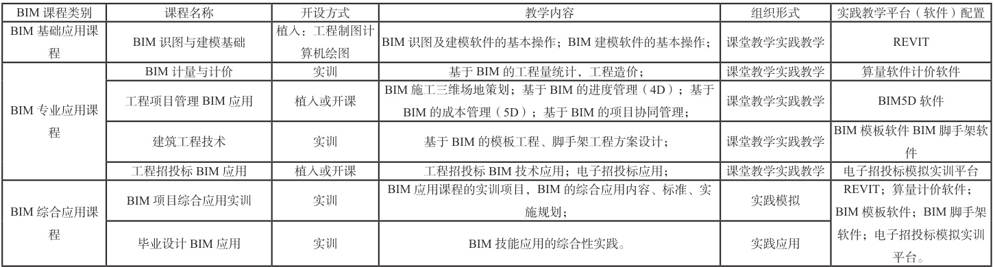 表1 融入 BIM 技术的课程体系(以土建类工程造价专业为例)