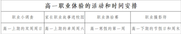 三、高一学生职业体验活动和时间安排(见下图)