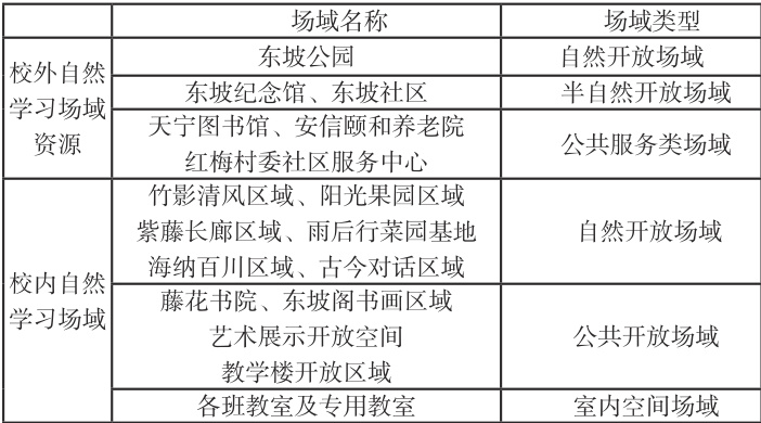自然学习场域是根据课堂学习内容和学习过程的需要,选择校内外相关场域,教师、学生、社区等共同打造,形成校内校外场域融通,室内室外和谐一体,课内课外有机勾连的自然教学环境,为课堂教学提供场域及环境支持。