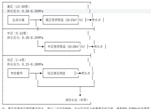 图1 建筑竖向分区供水系统示意图