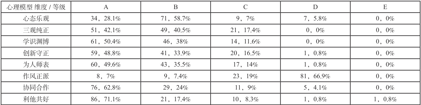 本研究对“教育家精神”进行基于心理学操作定义的“心理结构建模”,将大学教师的教育家精神(心有大我,言为士则,启智润心,勤学笃行,乐教爱生,胸怀天下)结合大学教师的职责角色具象化为“心态乐观,三观纯正,学识渊博,创新守正,为人师表,作风正派,协同合作,利他共好”的心理模型。这一话语体系无缝对接于中国千百年来关于教师标准的基础认知:“学高为师,身正是范”
