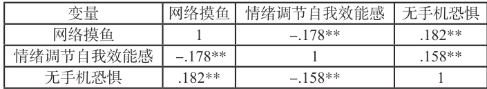 表1 无手机恐惧、情绪调节自我效能感和网络摸鱼的相关关系