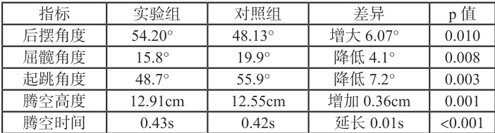 2.VBT 训练通过降低起跳角度、增大后摆角度、延长腾空时间等技术参数改善运动表现。